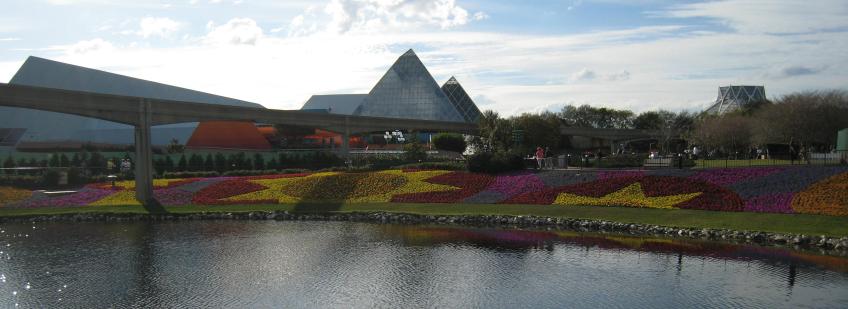 FlowerBed2 Published February 23, 2016 at 3028 × 1104 in EPCOT for Dinner Flower Bed on the west side of the entry to the World Showcase