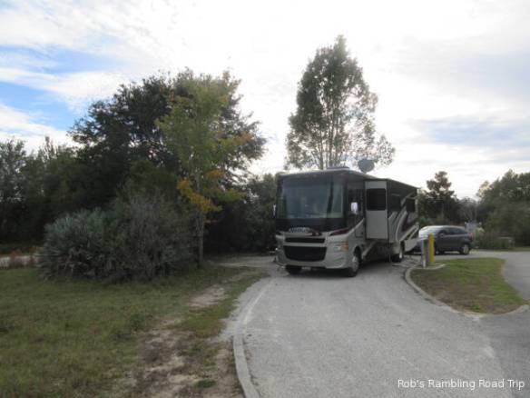 Today was moving day. I relocated about ninety miles inland to the Lake Louisa State Park in Clermont FL. The goal was to leave as near the noon checkout as possible to arrive as long after the 1PM checkout at the State Park as possible. I didn’t want to have to wait for someone to vacate the site I was destine to occupy. I managed to leave at 11:30. With one stop for gas and some heavy traffic I managed to stretch the trip into two hours and fifteen minutes. I arrived around quarter to two.
