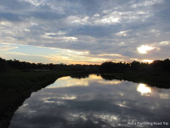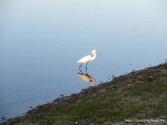 There may have been some wind rotation in the area, but it wasn’t at ground level. The threat was over after ten to fifteen minutes. The challenging part was finding a lull in the rain and navigating around all the big puddles to get back to my RV. The worst of the storms were east of the campground by early afternoon, but light rain continued the rest of the daylight hours. The TV continues to issue flood warnings and wind warnings for tomorrow.