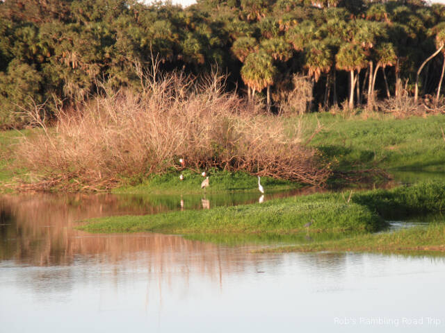 Around eleven this morning the weather radar showed the next line of storms was moving inland from the Gulf of Mexico. The rain and wind were picking up outside my RV. Around eleven twenty the weather radio and my cell phone both went off with alerts. A tornado warning had been issued. One of the areas mentioned in the warning was Myakka State Park. It’s a big park, but I wasn’t taking any chances. I grabbed my weather radio, cell phone and bicycle helmet and went across the street to the bathhouse. Four or Five other people had chosen to take refuge there as well. It’s a concrete block building that provides some shelter from the wind.
