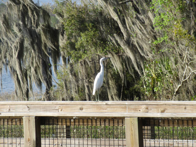 I’m at Paynes Prairie Preserve State Park until the first of March. The campground is in an old growth Florida forest on the side of lakes, and Florida prairie which seems to be more of a marsh. There is a lot of water and open space in the area. Once I got my RV home down the narrow tree branch draped road to my site, I’m pretty happy with my new location. A quick bike ride down to the lake was rewarded with a couple of bird sightings that I’ve missed seeing the last few weeks.