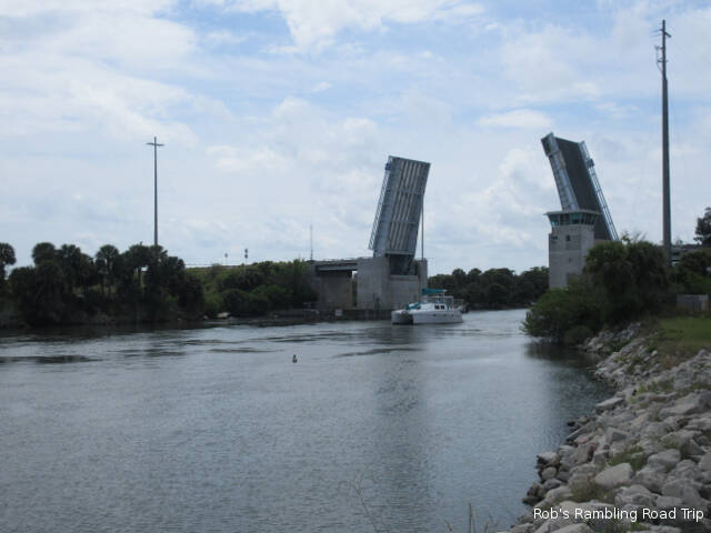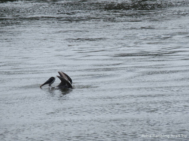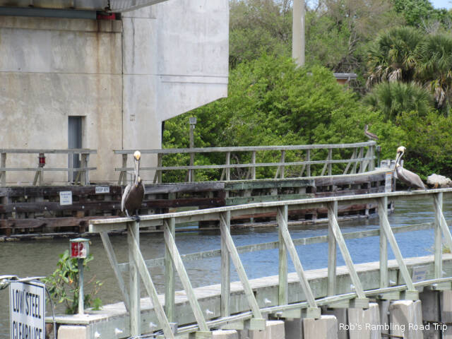 During the sunny part of the day, I returned to the Merritt Island National Wildlife Preserve. I wanted to see a manatee or two at the Haul Over canal. Last spring I saw about six near the viewing area. Last week I only saw a couple swim by. I hoped that I might see a few more today, but instead I only saw one. Instead I was entertained by the Pelicans that call the area around the nearby drawbridge home. They use the height of the bridge supports and protective pilings to spot the fish in the canal. The noisy splash as the pelican enters the water after a fish is impressive.