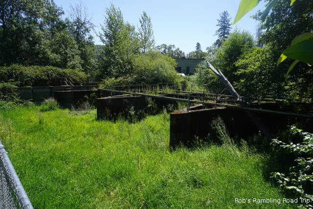 After hiking by the area of the falls the trail passes the old Gold Hill Diversion Dam. It was remove in 2008 because it was an obstacle to the salmon migration. Young salmon got caught in the diversion dam on their way to the ocean and spawning fish had difficulty getting up river past the dam. The town water supply now comes from a pump station at another location.