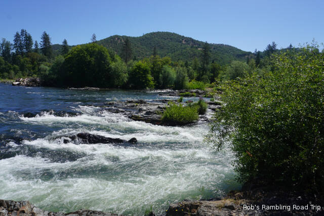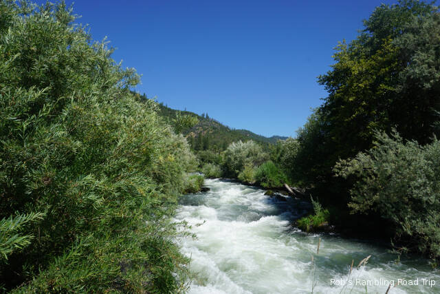 While I was near the falls, I got the chance to watch a couple of rafts shoot the rapids. The first boat got stuck on some high rocks until the second raft rammed it loose. Whitewater rafting on this area of the river is very popular. According to the internet, a five and a half mile stretch that ends in Gold Hill includes Class II to IV rapids. I find it hard to believe that some of the whitewater I saw today wasn’t greater than difficult, but I don’t have any expertise in rafting. That is why I was looking things up on the internet.