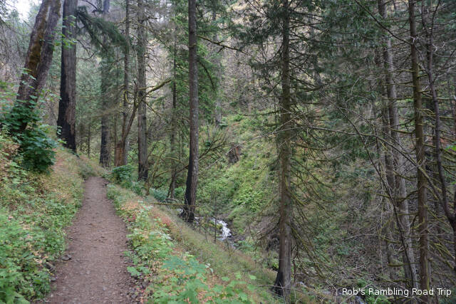 I was a little over halfway up the switchbacks when I had to wait for a group of about ten with tired kids and dogs sitting in the middle of the trail to move. There was a group above them on the trail trying to come down and the group I was in trying to pass going up hill. I decided it wasn’t worth the effort. I turned around. The part of the trail I took was the best part. I saw the waterfall from the base, the bridge that crosses between the upper and lower falls and again from the end of the second major switchback. The trail above that point doesn’t get near the falls again until the top.