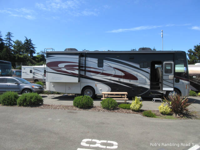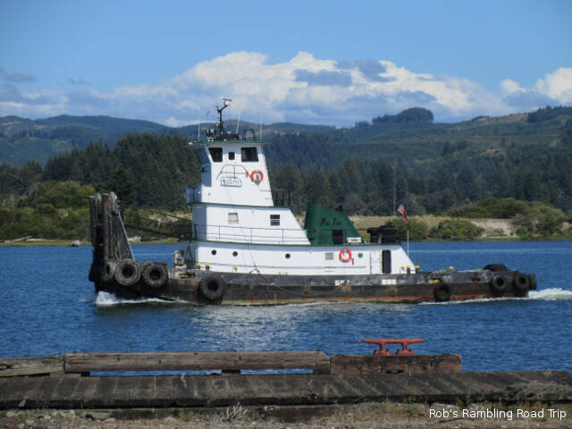 I arrived at my destination for the next two weeks shortly after 1PM. I’ll be staying at the Mill Casino Hotel and RV Park on the shore of the Coos River in a harbor area that is part of Coos Bay. This is a modern facility for RVs with paved full hookup sites separated by plantings in rock filled beds. The view of the boat traffic out my window should be entertaining.