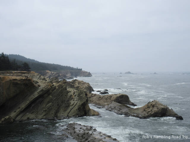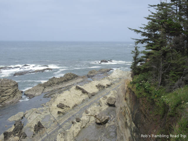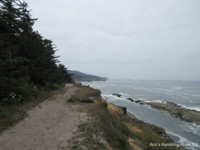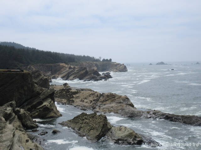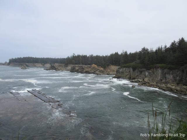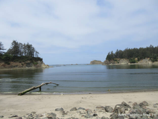 Shortly after noon I headed for the coast. It was time to verify that the Pacific Ocean was still there. My first stop was at the beach in Sunset Bay State Park. The view out into the ocean was restricted by cliffs along both sides of Sunset Bay. The tide was away from the shore but rising making it dangerous to explore along the cliffs. Getting trapped by rising water would be a good way to start my visit to the coast.