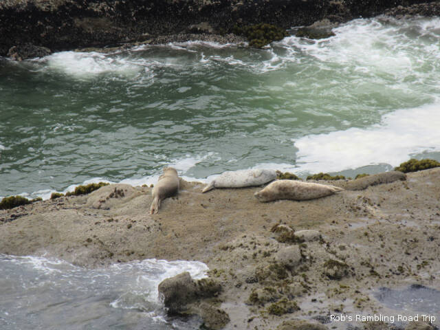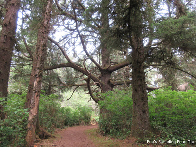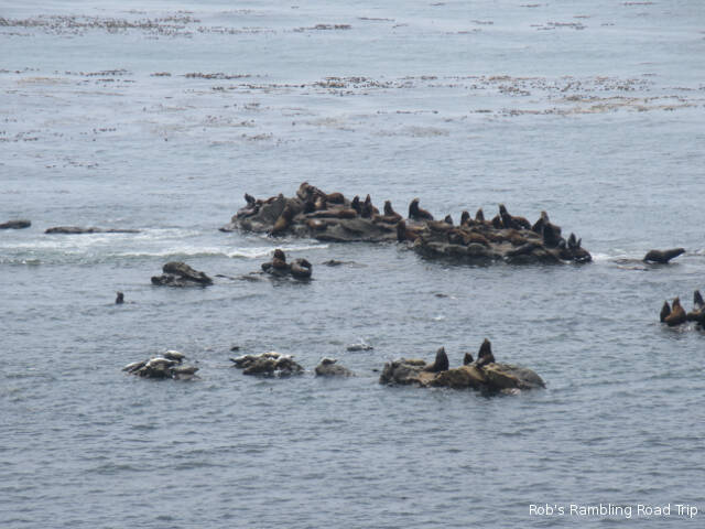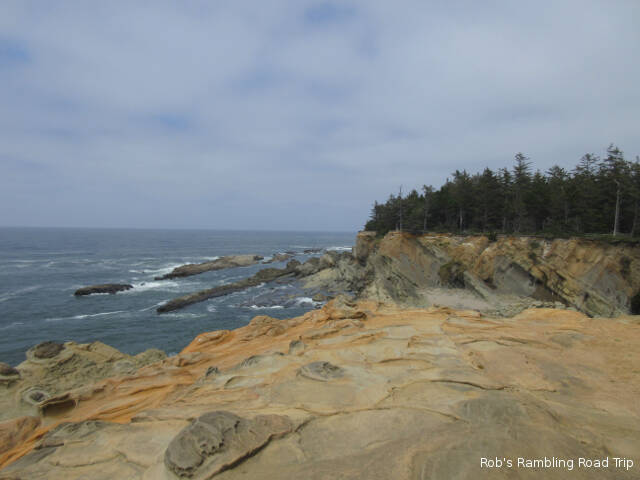 Next up on Hike along the cliffs overlooking the rocky shore. The views of rock formations and breaking surf were majestic. I even got to see some sea lions and seals on the rocks. I only walked one section of the trail. I wasn’t prepared for a long hike. The sun along the shore was heavily filtered by the clouds making most of my pictures look washed out and as usual my binoculars were back at my RV home. I’ll return another day with my binoculars and some water for the hike. Hopefully, the sun will be shining next time.