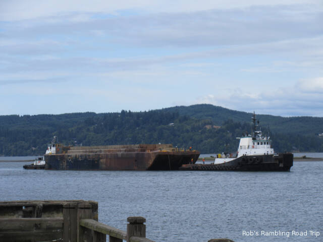 Back at the RV park this afternoon I watched the activity out in the bay. There hasn’t been much going on in the bay while I’ve been here, but today a barge was moving up river. In front of the park a hand off was being made between two tug boats. The tug that toad the barge into the bay and up river was getting disconnected. A new tug had taken over pushing the barge from the rear. Seeing workers in hard hats walking on the barge while underway was unusual.