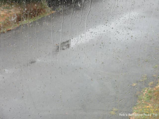 It started to rain about eight this morning. A gentle, occasionally heavier, rain fell until about two in the afternoon. The sun tried to gain a foot hold during the afternoon without much success. During one brief period of sunshine the temperature got into the upper half of the sixties. The remainder of the day was in the low sixties. I had to turn the electric fireplace on in my RV home to take the chill off. As night fall approached the sun lost the battle for dominance. Thick cloud cover returned and soon transitioned into a heavy mist. As I’m writing this blog entry the mist has mutated into rain. Tomorrow is supposed to be drier and warmer.
