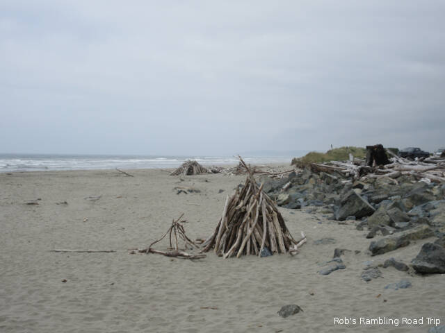 I walked the beach dodging all of the big pieces of driftwood that littered the beach. Somebody had put a lot of work into collecting many of the pieces into big piles. The intent may have been to have a fire on the beach, but right now the entire area is under a fire ban. The wave action in the ocean was very active with the incoming tide supported by the wind. A few of the waves were breaking over the jetty on the north side of the Coquille River when I walked out to the end, but the view was worth it.