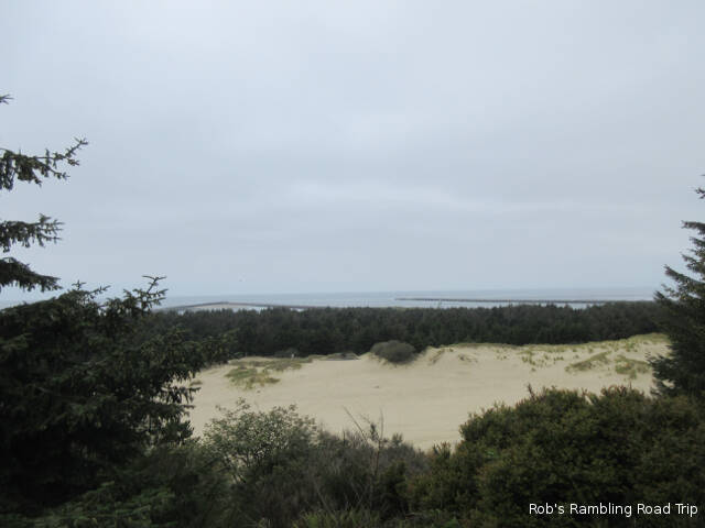 I visited the Umpqua River Lighthouse that overlooks the inlet from 100 feet above on top of a hill a good distance back from the coast. The area between the lighthouse and the coast is filled with sand dune and pine trees. It was very different from the area south of Coos Bay. Later in the year the hill the lighthouse is on becomes a major whale watching area. Today it was hard enough to see the end of the inlet jetties, so any random whale would be very hard to spot. Most whales are spotted between November and January from the observation area.