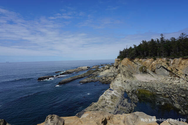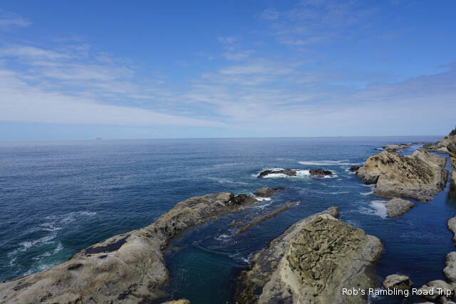 I keep trying to draw parallels between the Pacific coast and the Atlantic coast. The cliffs are one difference. There aren’t as many places with high cliffs on the Atlantic coast of the United States. The other thing that I’m confused by is the lack of boat traffic. On the Atlantic coast there always seems to be a fishing boat, pleasure boat or an offshore ship in sight. Out here even near the port areas I’m not seeing many (any) boats from horizon to horizon. Maybe I’m just in the wrong place.