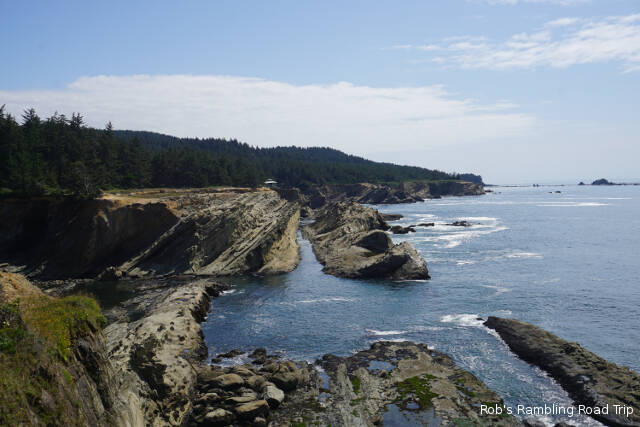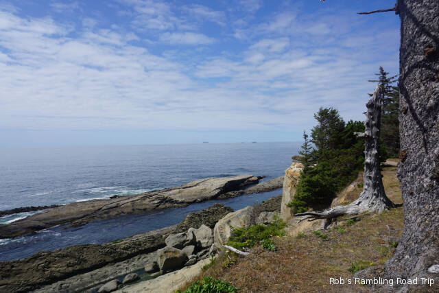 There are three state parks on the road out to Cape Arago. I stopped at the first park, Sunset Beach State Park, on Sunday. Today I drove to the end of the road at Cape Arago State Park. It had some nice views into the ocean and to the south along the coast. I imagine it would be a good place to see whales, but not today. The real scenic cliffs and rock formations is along the coast between Sunset Beach State Park and Cape Arago.