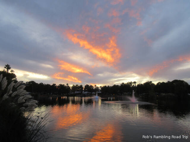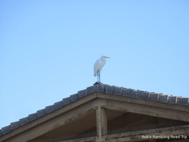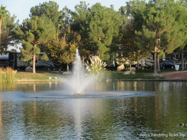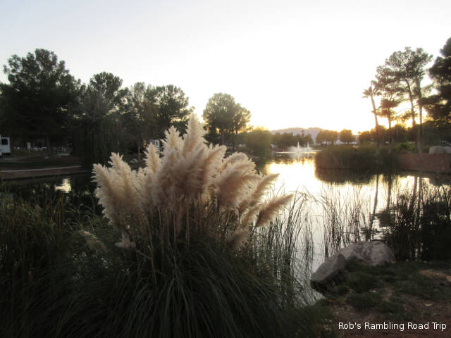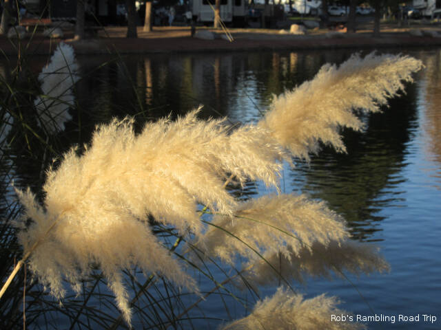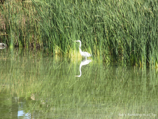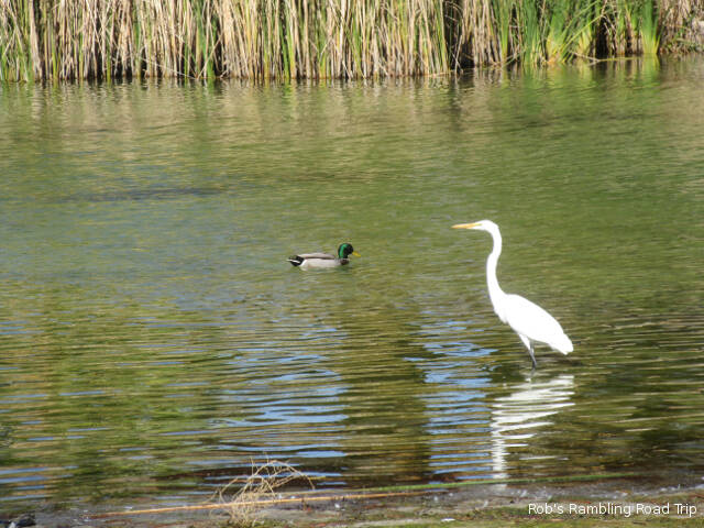 It was a little warmer than yesterday. The temperature peaked around eighty under a bright sunny sky. There was also a strong wind out of the north, but I only really felt it while away from the RV park in town. When they built this campground they surrounded it with a high earth berm. The material for the berm probably came from turning a swampy area into the lake. The overall landscape works. The berm diverts the wind and the lake provides a great focal point in addition to the wildlife it attracts.