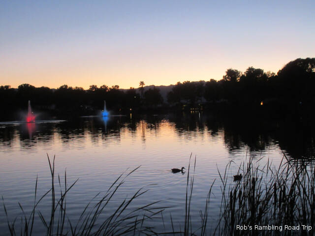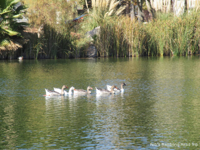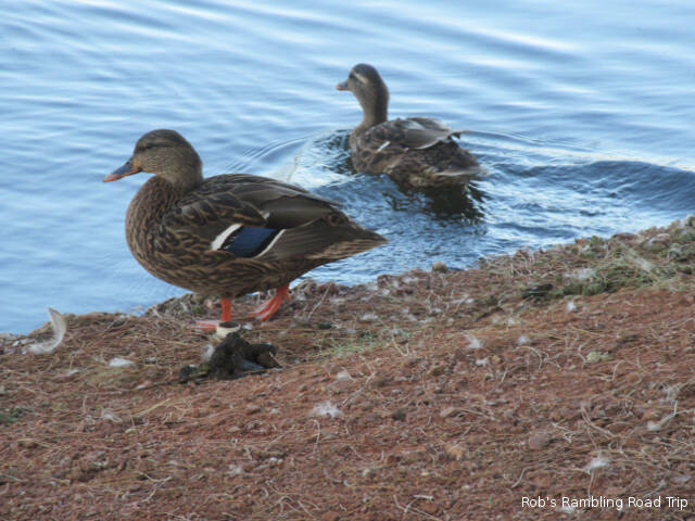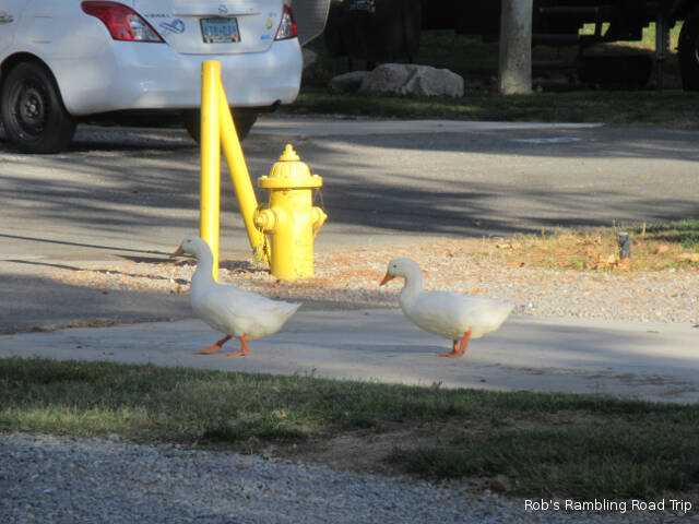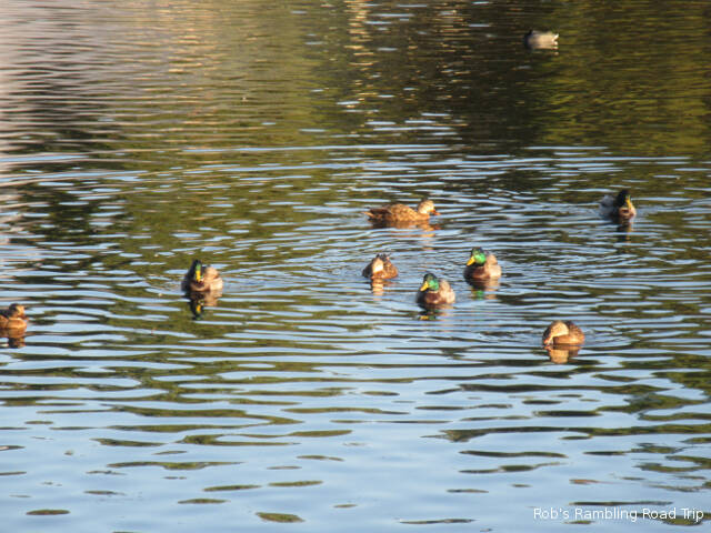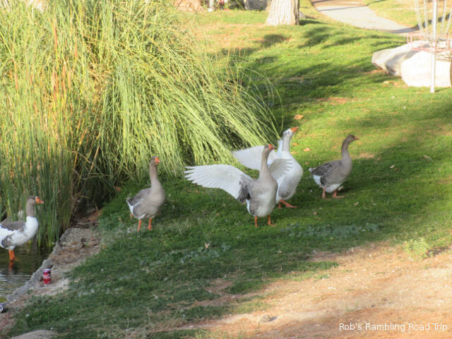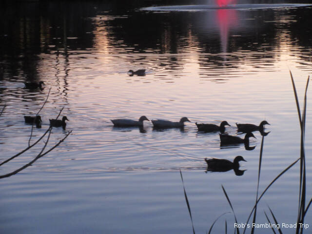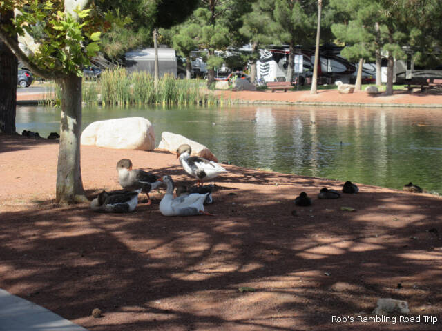 I continue to enjoy walking around the lake in the center of the campground. It’s interesting to observe how comfortable some of the ducks are with people. The ones that come into the campground and spend time under peoples RVs will let you walk by within a few feet. Some will even try to stare you down. The more wild varieties of water fowl are a little more cautious. Some will jump in the water and swim away while others don’t react unless you walk toward them.