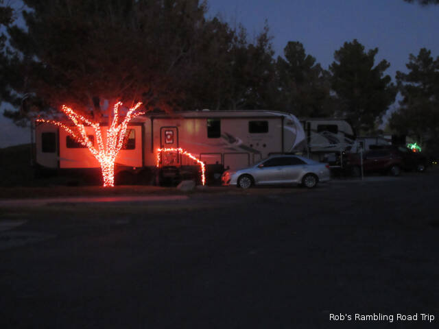 I’m beginning to think many of the out of state people staying in this park are here on their way south. They delay here for a few days to a few weeks waiting for the ideal time to arrive at their destination for the winter. That’s basically why I’m here. I don’t want to start the monthly clock in Las Vegas until after the twenty fourth in order to time my departure at the end of February. My neighbor from Washington State is waiting for the daytime high temperatures in the Arizona desert to get lower. They are headed for a winter of boondocking on Bureau of Land Management (BLM) land near Quartzsite AZ. Cooler temperatures are vital to allowing their solar panels and generator to keep up with their power demands. Several other residents of the park have more solar panels on their roofs than they need to stay in this park. I wouldn’t be surprised to learn they have a similar destination.