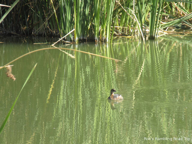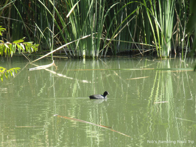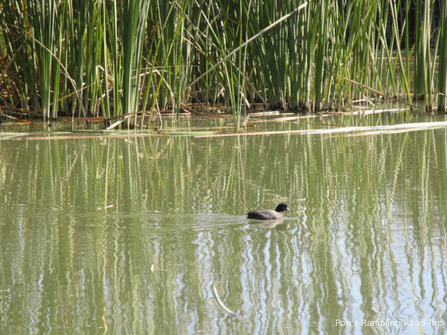 I walked through a different area of the park today. There are two bigger ponds in this area, but I saw fewer birds in this area. The tall grasses are the big feature in this area. Many of blades are over eight feet high. The ones in the water provide shelter for the water birds. The tall grasses on land are the source for lots of mysterious noises. Animal life of some form is using the grasses for shelter. There are a few areas that look like small animal paths. I even saw several piles of scat on the walkways, but no actual animals.