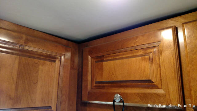 My focus today was investigating a maintenance issue in my RV home. It looks like one of my overhead cabinets wants to fall off the wall. Over a year ago I saw some separation between the cabinet and the ceiling. Initially I wasn’t sure if it was a new situation or a manufacturing defect that I hadn’t notice before. I’ve kept watch on it ever since. A few months ago I became sure it was an issue that needed to be addressed, but it still wasn’t getting any worse. Since I’ve been here, not even moving, the gap between the cabinet and the ceiling has gotten wider.