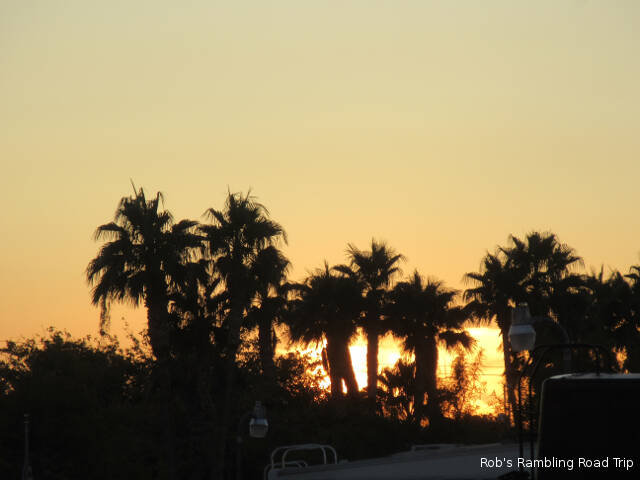 I was back at my RV home around 4PM as it was starting to get dark. I had time for a walk around the park before darkness set in. The early sunset is still hard to get used to after a week on standard time. It seems like only a few days since it was still light at 8PM or later. There seems to be a long time inside the RV with the curtains down watching TV and listening to the occasional mystery noise from outside. I need to get back in the mode of being out after dark.