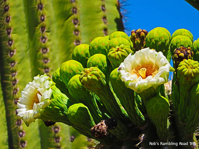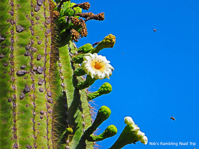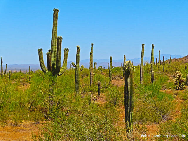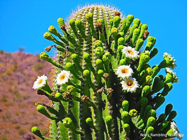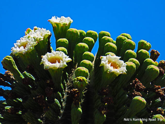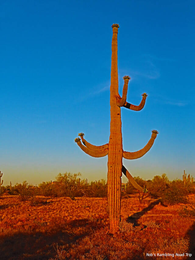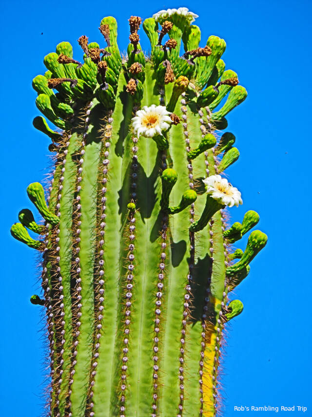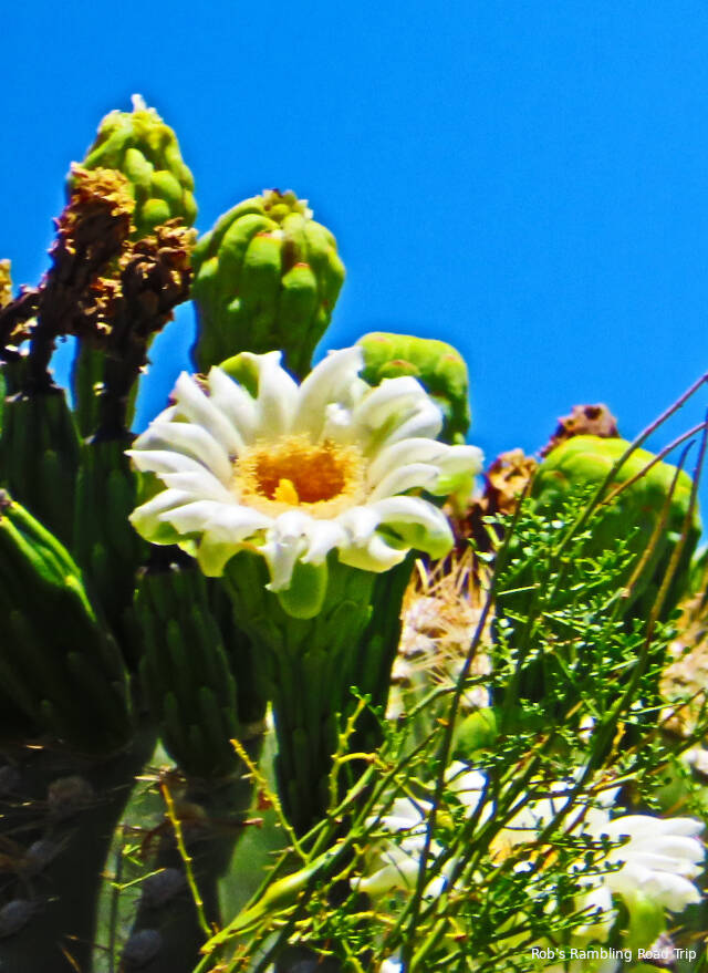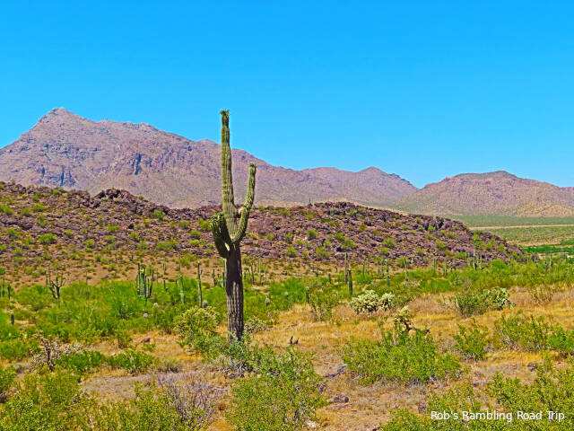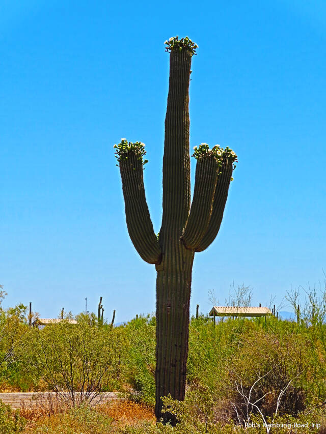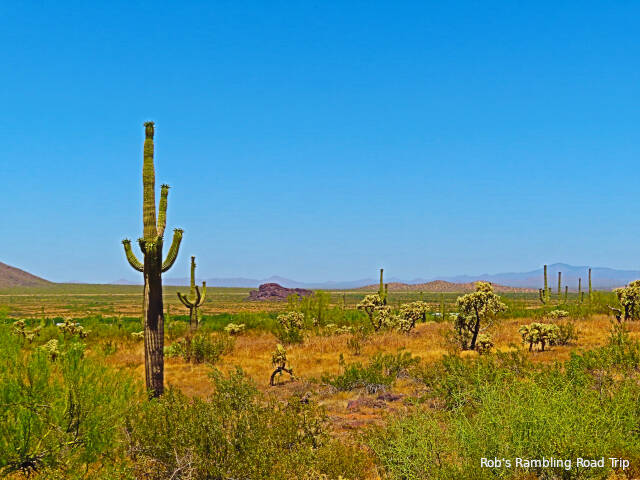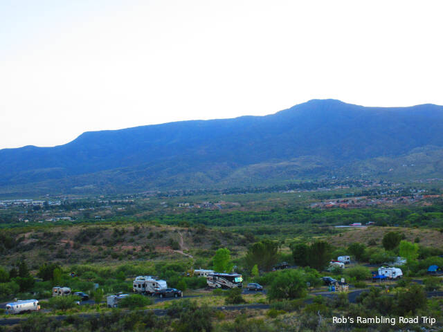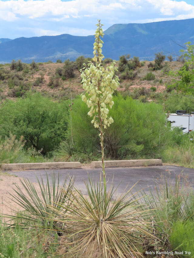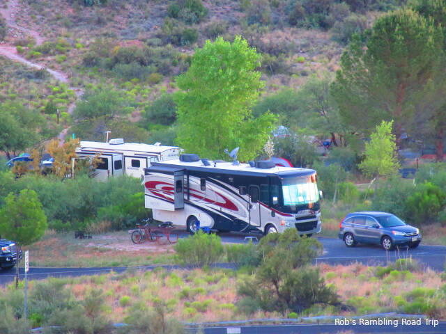 The campground was full this weekend, but by mid morning it looked very empty. I woke up around six thirty when the first RV departed. That’s one of the disadvantages of having the site across from the exit and dumpster. A steady pace of departing RVs followed. Checkout time is noon, so they don’t have to get early starts. I suspect traffic and temperature concerns cause people to leave early. The two lane southbound highway to the Phoenix area winds up and down over some serious elevation. A little slow down or an accident on that stretch or road causes long delays.