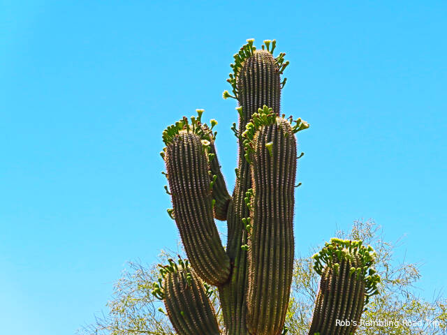 After sixty one nights on the travel sidelines, today was a travel day. To ease into travel mode I only went fifteen miles down the road to Picacho Peak State Park. I spent the morning in the relatively cool mid eighties temperature finishing the packing. I pulled out of the RV park just before noon and arrived at the state park before 1PM. Along the way I stopped to add fifty five gallons of gas to the motorhome.