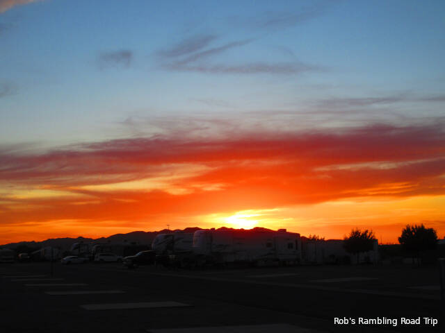 After sixty one nights on the travel sidelines, today was a travel day. To ease into travel mode I only went fifteen miles down the road to Picacho Peak State Park. I spent the morning in the relatively cool mid eighties temperature finishing the packing. I pulled out of the RV park just before noon and arrived at the state park before 1PM. Along the way I stopped to add fifty five gallons of gas to the motorhome.