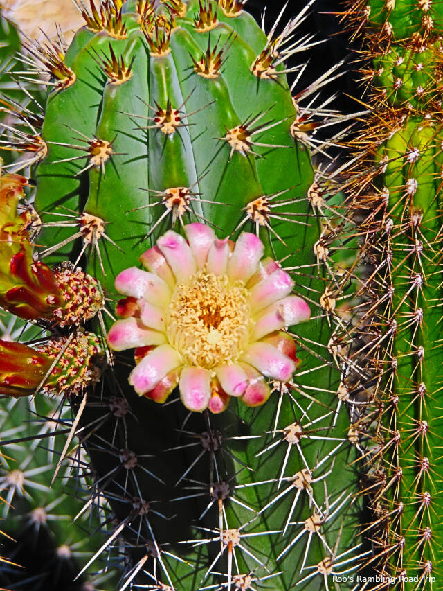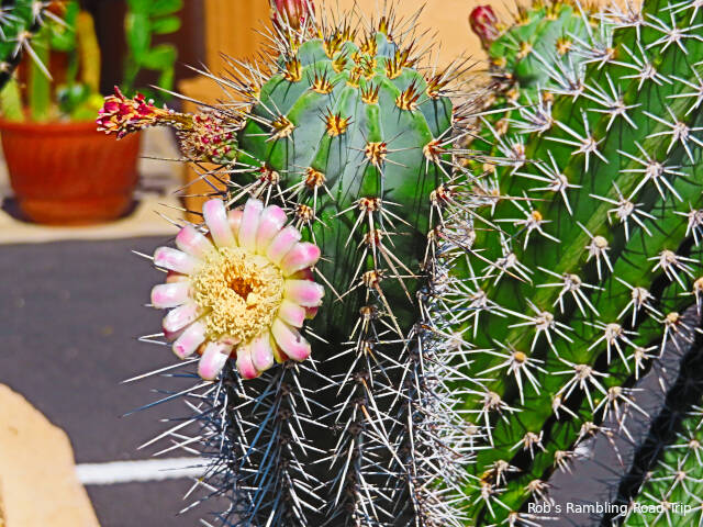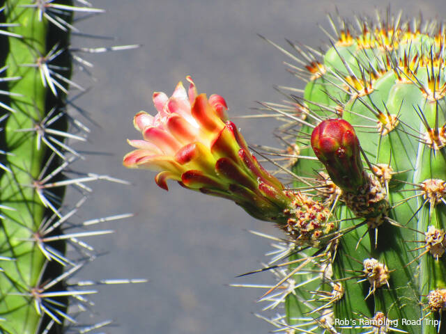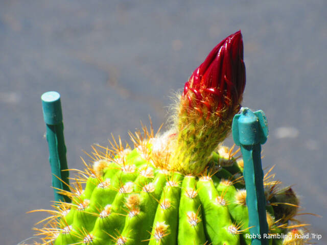 Despite the short distance this location is very different from the RV park. I am back among the saguaro cactus and they are blooming. The campground is arranged in loops in the shadow of Picacho Peak with good distance between sites. Interstate 10 and the railroad track are still nearby, but not as close. The road and train noise is not as noticeable. This is closer to my kind of park.