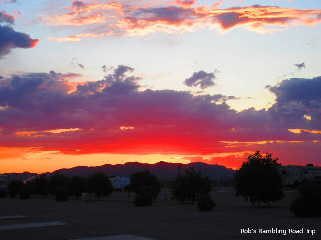 Even my evening walk was shorter than normal. I only walked the perimeter of the RV park. Usually I walk up and down every road in at least one direction. When I’m in the mood for more exercise I walk each road in both directions. The difference is around half a mile walking just the perimeter to about 2 miles going up and down all the roads in both directions.