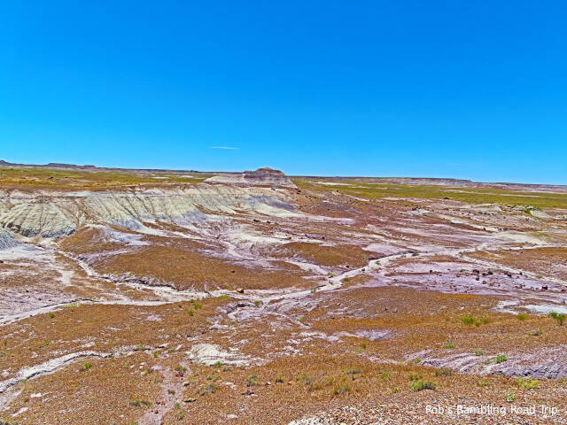 I returned to the Petrified Forest National Park today. I passed through the northern area of the park that I visited last Wednesday and started touring in the area to the south. This part of the park I remembered a little better than the northern part from my visit in the fall of 2017. Standing at the high overlooks and walking the trails was difficult in the wind. It is hard to imagine how bad it must have been during yesterday’s stronger winds.