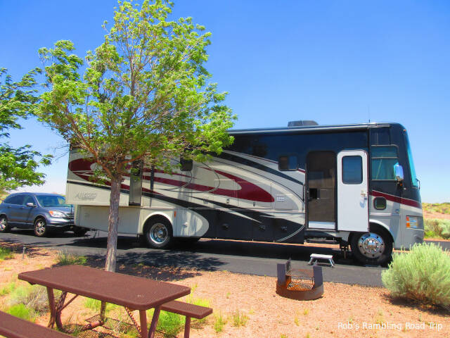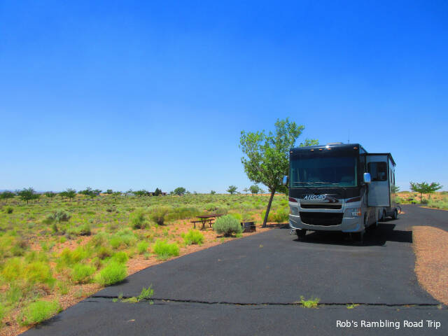 Side view of my RV home at the Homolovi State Park campground.