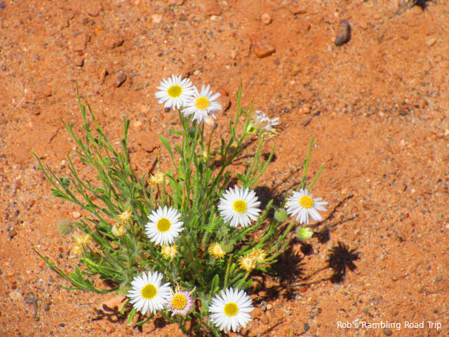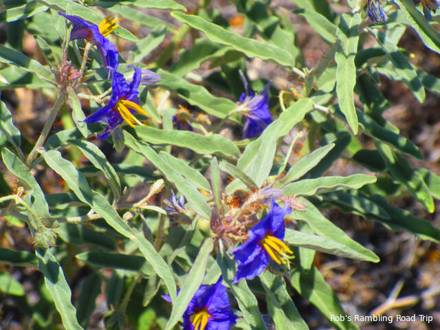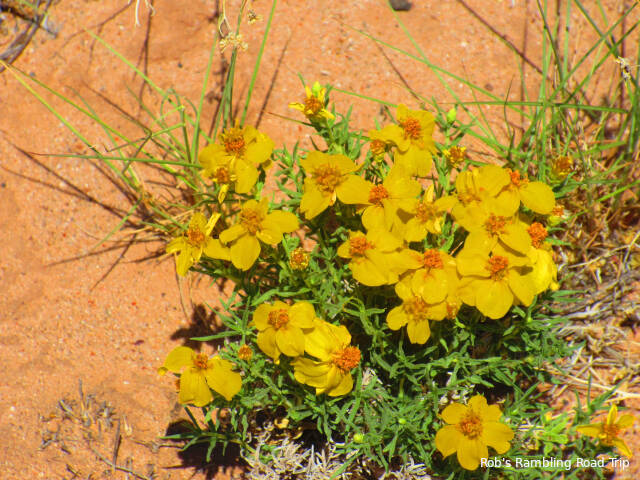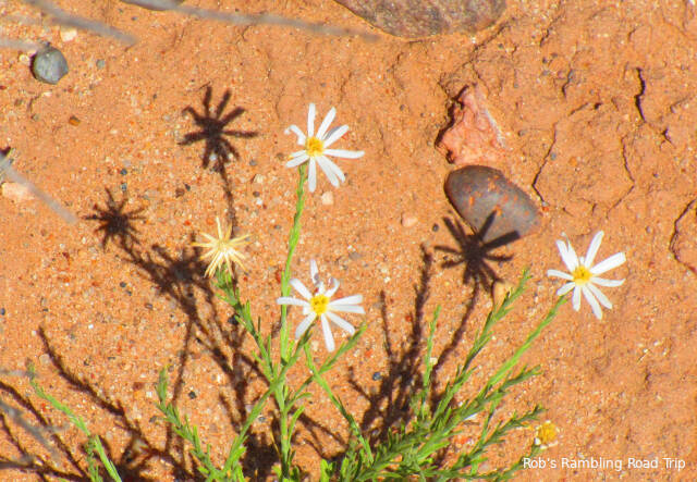 Today’s big activity was a hike to the first village known as Homolovi I. It is located along the Little Colorado River about a mile and a half from my campsite. I hiked down along the access road. There isn’t a trail from the campground. Most of the wildflower blossoms along the road are gone now, but I found a few colorful bushes to take pictures.