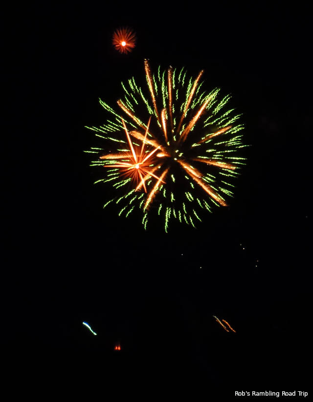 I took a break after writing the above two paragraphs. A heavy, not severe, thunderstorm developed right over the area. I’ve been watching the storm on my phone weather radar app and the impressive light show out my front window. The storm is moving slowly away from the area to the southeast. On the positive side the rain may wash some of the dust off my RV home and car. It’s the first real water either has seen since January or February.