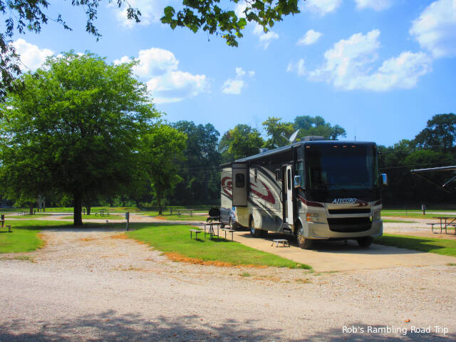 The laundry is in an eleven by seven room behind the restrooms in the flood mobile facilities. There are two washers and two dryers and best of all they are free. It is not often that I find a free laundry in my travels. Many campgrounds see the laundry as a source of revenue or an opportunity to out source the headache of maintaining the machines. I showed my appreciation for the free facilities by doing three loads of laundry. Later in the week I may strip the bed. The blanket could use a good washing.