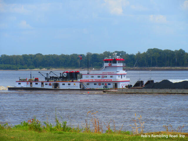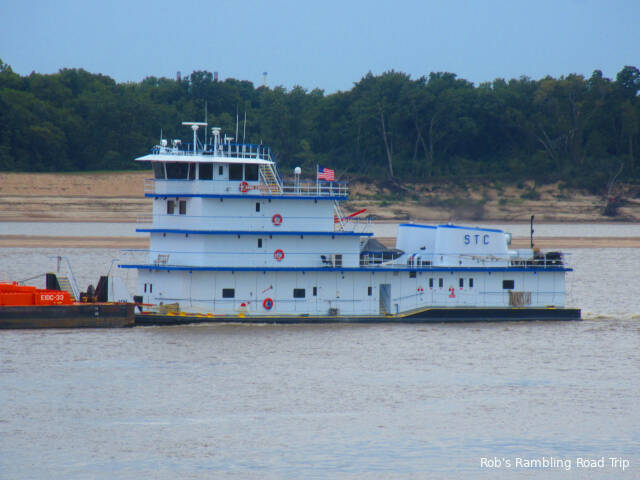 In between the laundry and the rain I continue to watch the traffic in the river. I still haven’t seen anything other than tugs and barges. There are lots of different configurations of barges and tugs from singles to massive strings of barges. The other surprise is the water level in the river. It has gone down several feet since I arrived here on Sunday. There was water all the way across to the far shore on Sunday. This morning there were sand bars in the area from the center line to the far side. I don’t know everything that goes in to a river level forecast, but the current forecast has the water level dropping over the next month or so.
