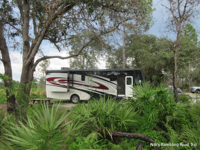 I arrived at the Lake Manatee State Park a little after 4PM. The roughly five hour travel day is one of my longest for the distance. My final challenge was backing into my site without a rear view camera. It took a little longer with a few more pauses to get out and look around, but I’m settled in for the next two weeks.