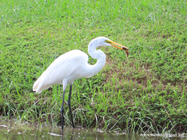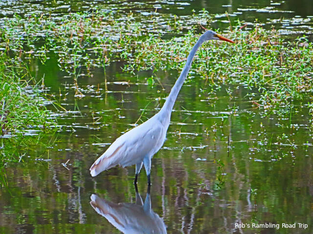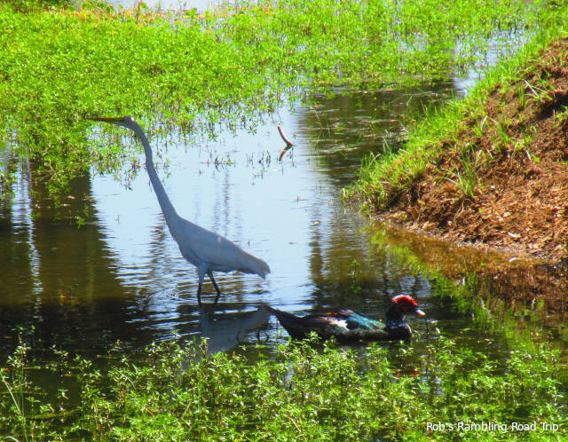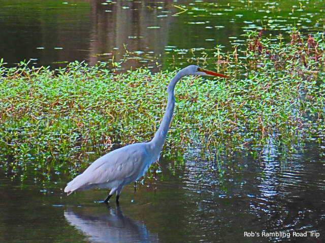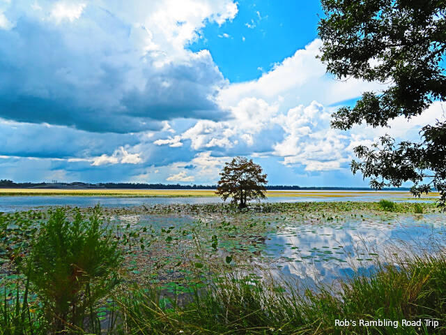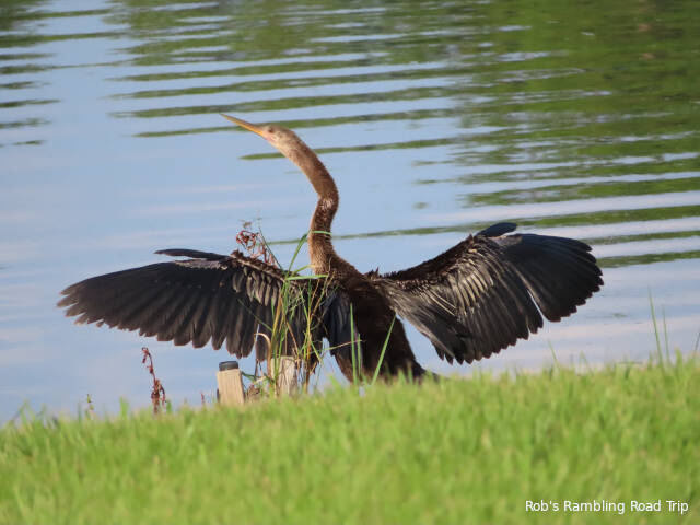 Lake Seminole boarders the west side of the campground. Thus the name Eastbank campground. This side of the lake created by damming the confluence of the Flint and Chattahoochee rivers is filled with water plants. There is plenty of open water from the middle toward the west bank that supports recreational boat use and I think some commercial boat traffic. There was a USCG buoy tender cruising back and forth this morning. People fishing from boats seem to favor the edge between the clear water and the plant filled water. That is probably a drop off to deeper water where the fish gather.