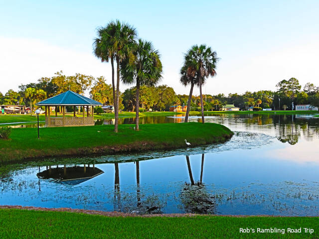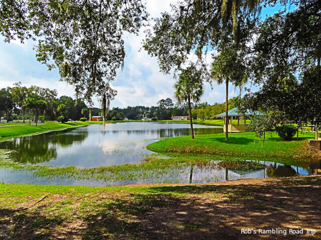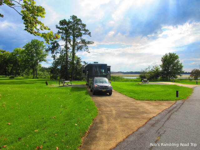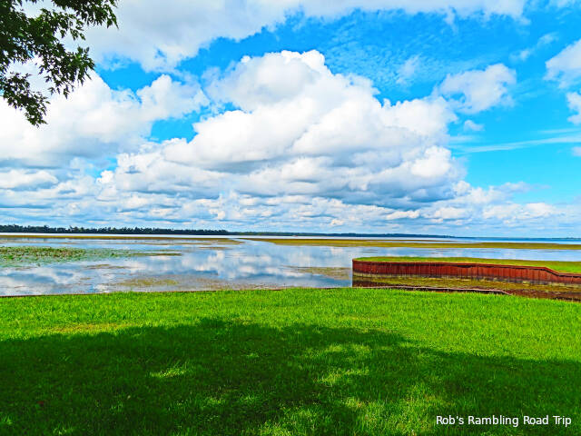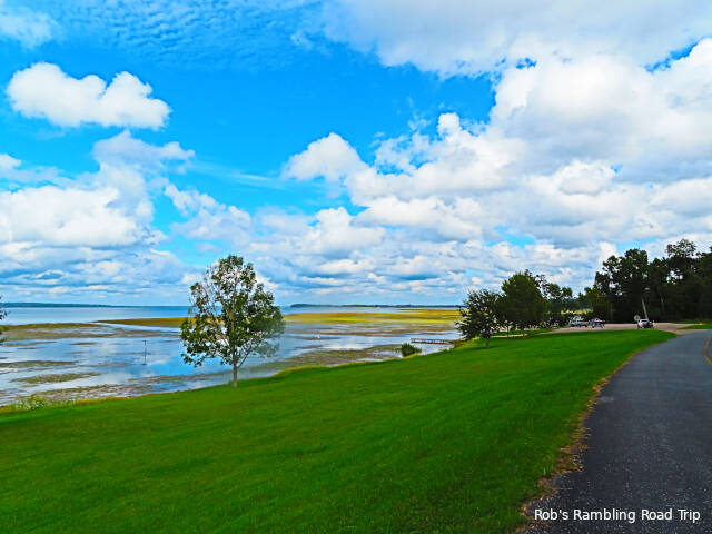 I finished setting up for my two week stay this morning before exploring the park. The sixty five sites in the park are only sparsely filled. I expect it will be much busier over the weekend. There is a lot of open space between sites filled with green grass and an occasional tree. It is a very pretty campground.