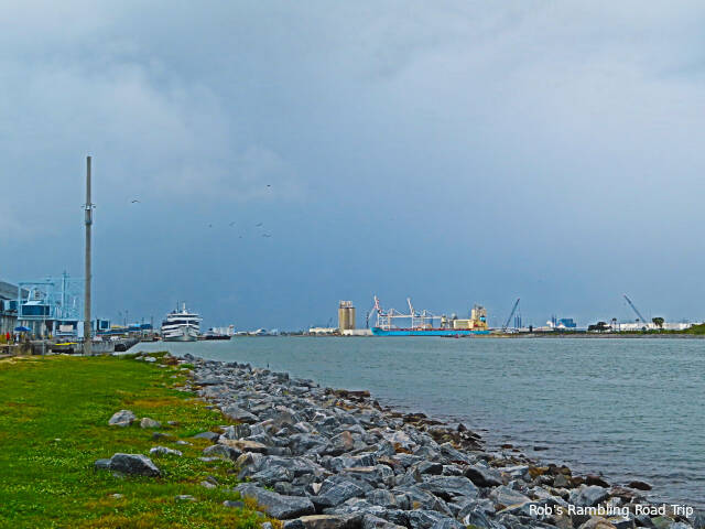 When I got up this morning the sun was out and the sky to the east was blue. When I looked to the west and north the sky was filled with thick dark clouds. The front was approaching. I got most of the outside tasks completed before breakfast. The rain arrived during my morning meal and continued hard for a little over an hour. I used the time to get the inside of the RV ready for travel. By the time I had to get back outside to finish the packing for my noon checkout, it was only a sporadic light rain. Half way to my destination the sun broke through the clouds. Unfortunately, the wind also picked up.