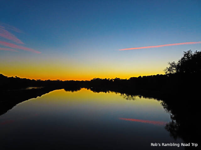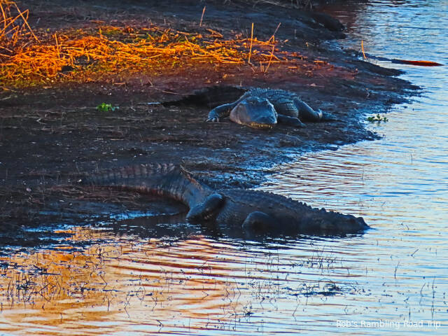 My trip for groceries took the place of my morning visit with all of the wildlife in the park. My evening visit took a little longer. I waited at the bridge over the Myakka River until the sun went down. The alligators get a little more active when the sun stops warming their cold blooded bodies. As the sun set the gators all left the river bank for the water. They were soon invisible deep in the water. I hoped to see more deer on my walk back to my campsite in the growing darkness, but it wasn’t to be tonight.