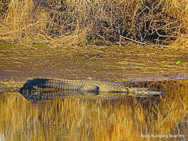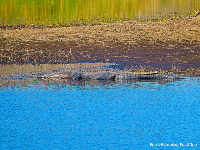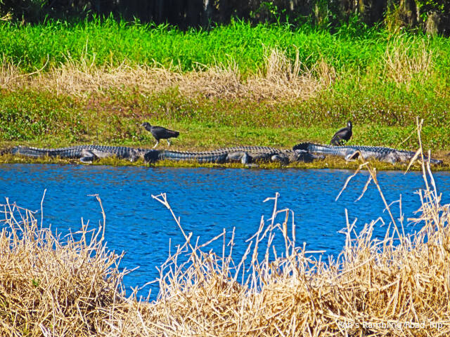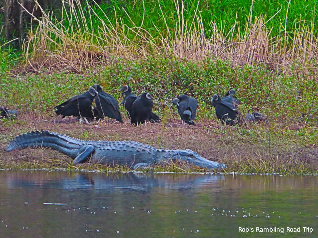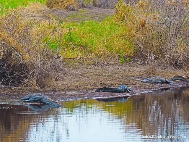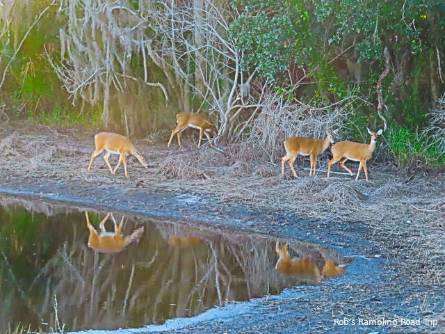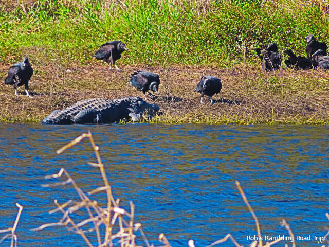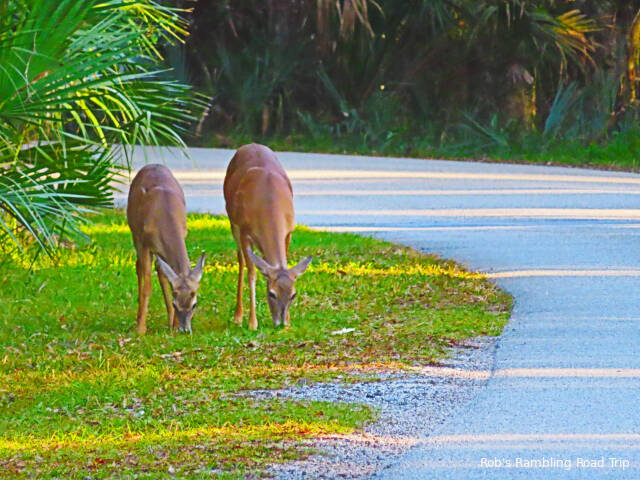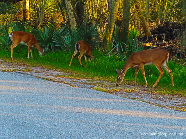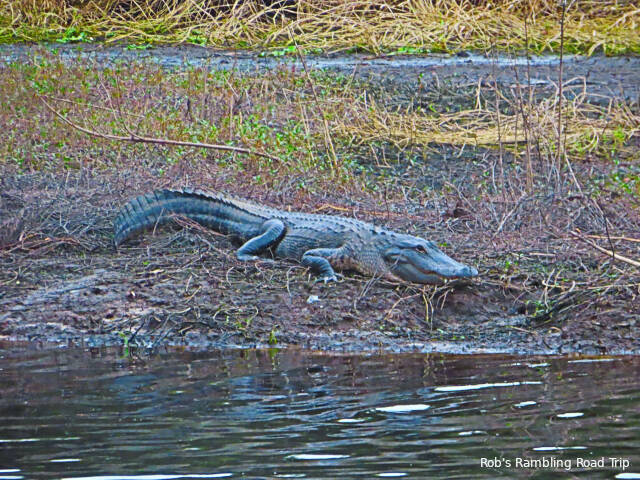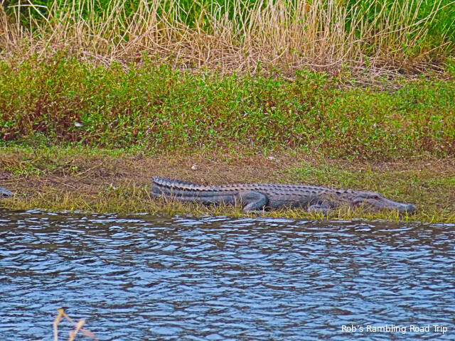 My trip for groceries took the place of my morning visit with all of the wildlife in the park. My evening visit took a little longer. I waited at the bridge over the Myakka River until the sun went down. The alligators get a little more active when the sun stops warming their cold blooded bodies. As the sun set the gators all left the river bank for the water. They were soon invisible deep in the water. I hoped to see more deer on my walk back to my campsite in the growing darkness, but it wasn’t to be tonight.
