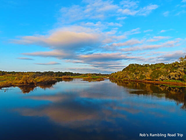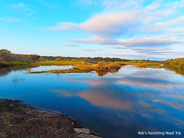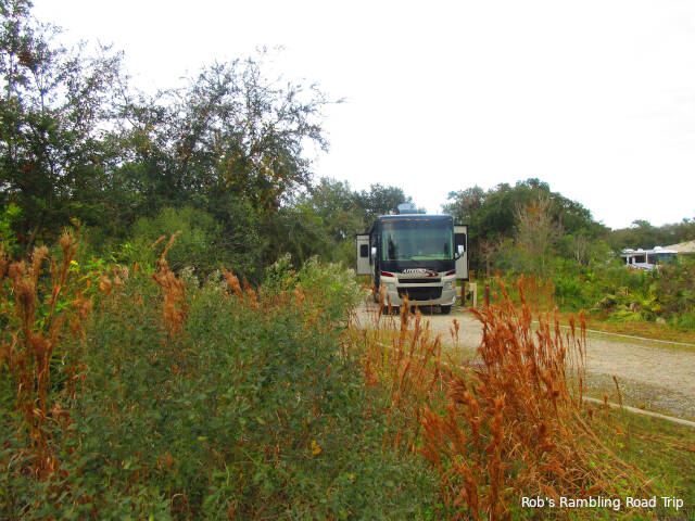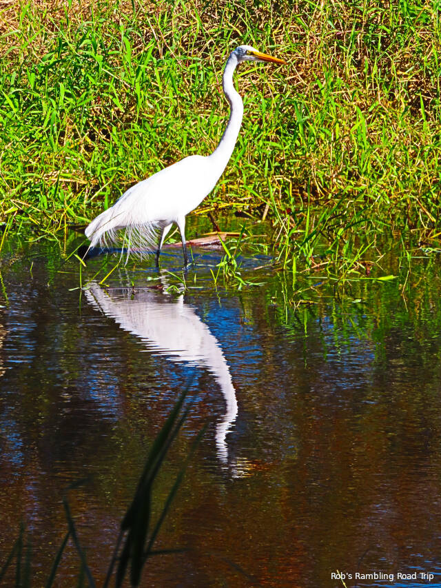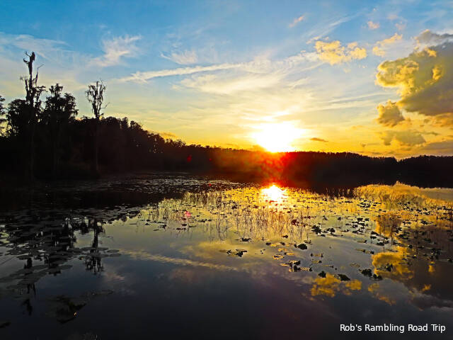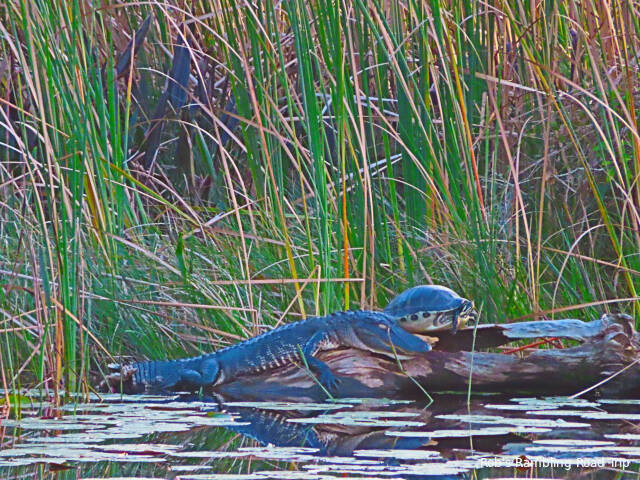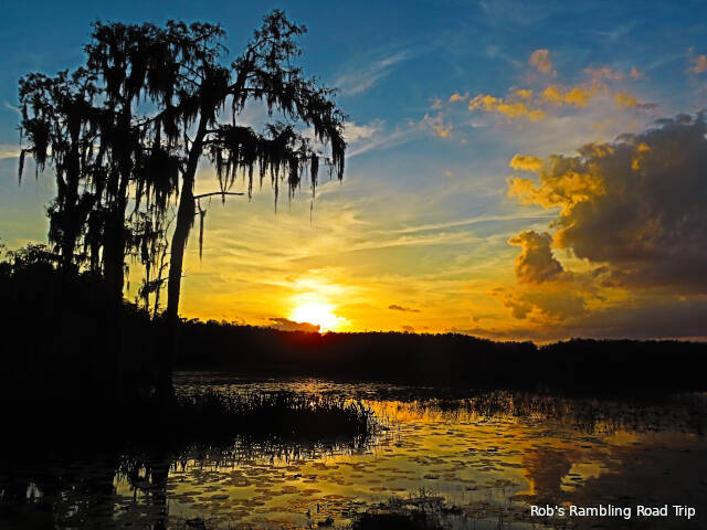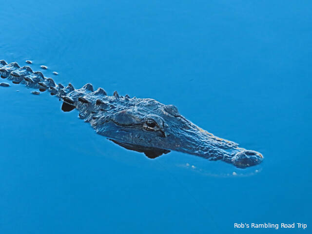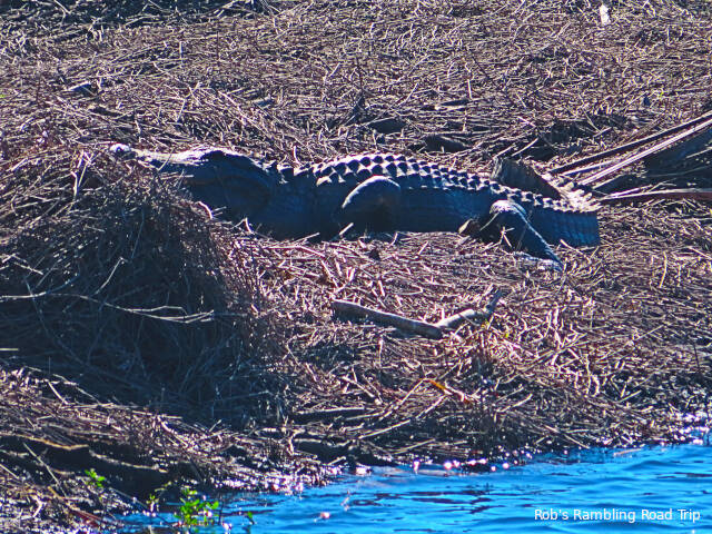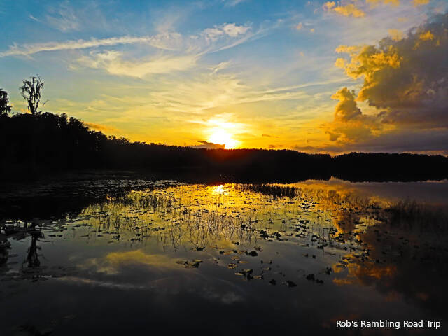 My trip for groceries took the place of my morning visit with all of the wildlife in the park. My evening visit took a little longer. I waited at the bridge over the Myakka River until the sun went down. The alligators get a little more active when the sun stops warming their cold blooded bodies. As the sun set the gators all left the river bank for the water. They were soon invisible deep in the water. I hoped to see more deer on my walk back to my campsite in the growing darkness, but it wasn’t to be tonight.