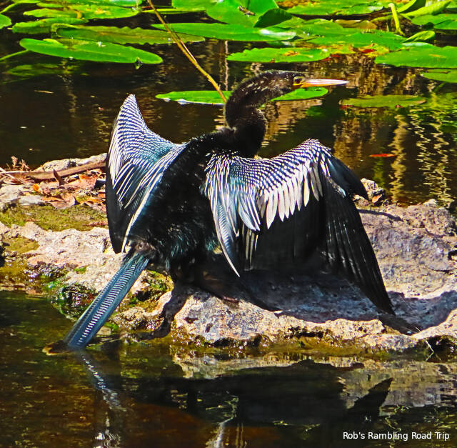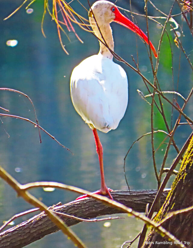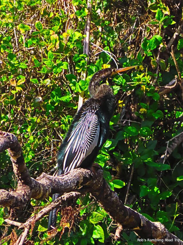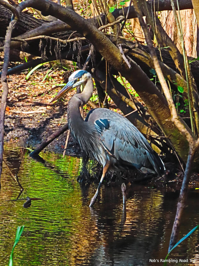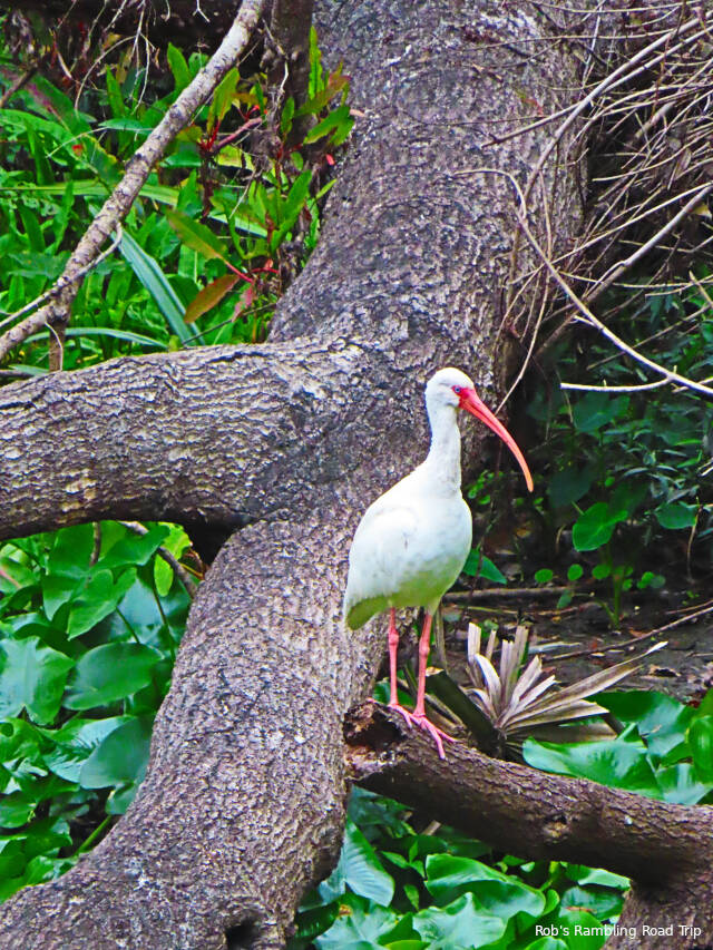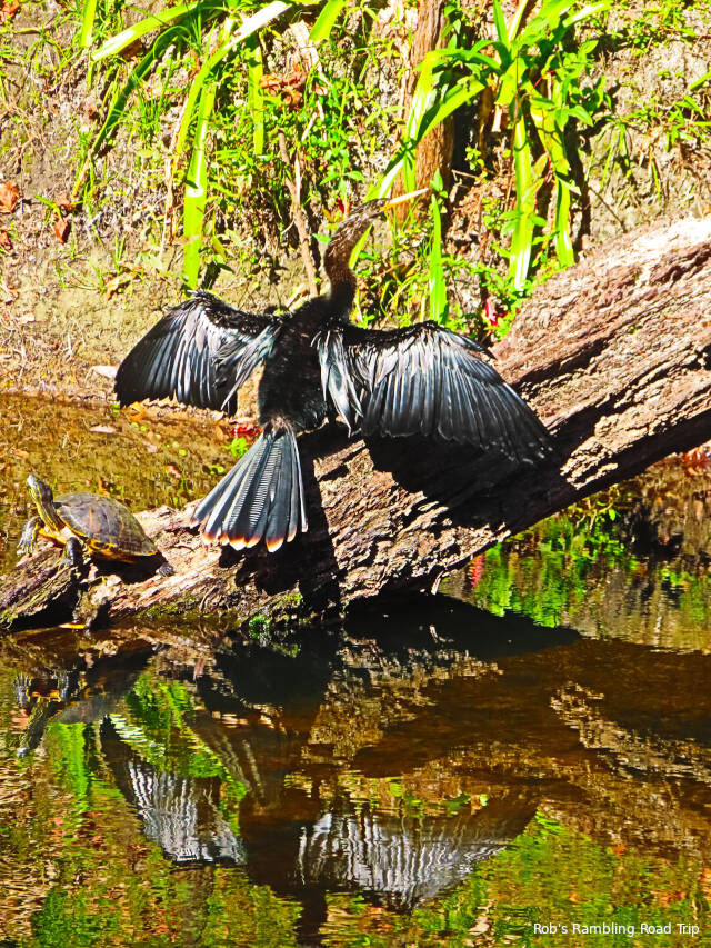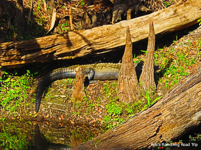 This afternoon I hiked the Seminole trail on the far side of the Hillsborough River from the state park’s campground. It is a 3.2 mile loop trail that follows the river for the first third or so of its length. The trail is labeled “moderate” because it goes up and down a few twenty foot slopes with lots of exposed roots. It really isn’t very difficult. The worst part of the trail is the mud. If the water level was any higher some areas would be impassable. With the current water level the ground in some areas was wet and slippery, but not squishy. The sides of my shoes did not come in contact with the mud.