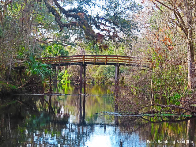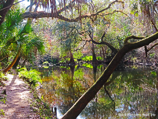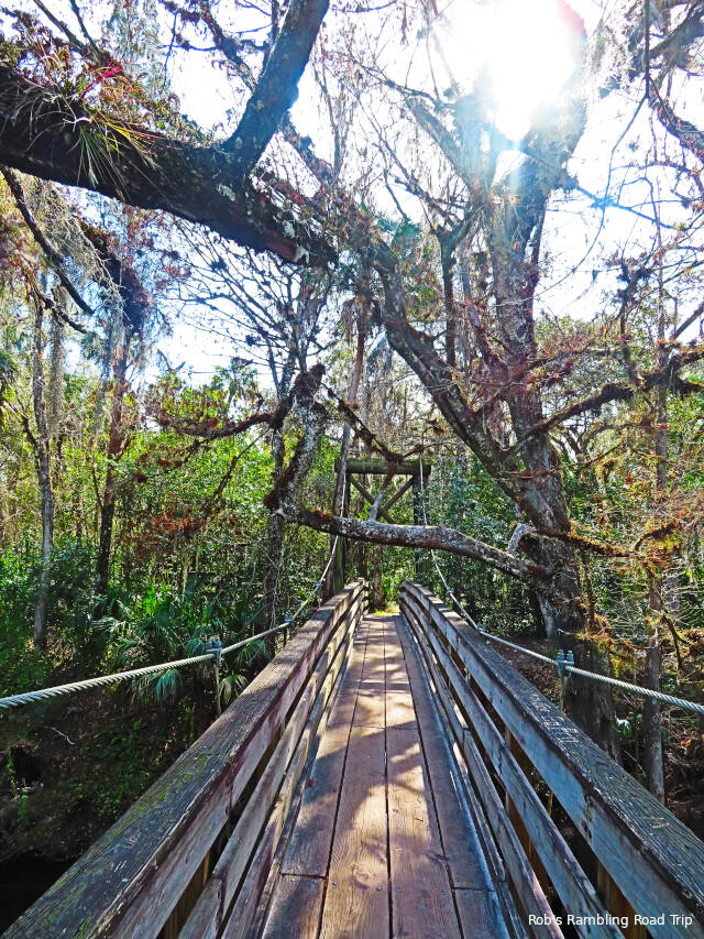 The trail begins a good distance away from my campsite. I’d guess it is about a mile and a half. Some of the distance is the result of hurricane Irma three plus years ago. The bridge nearest the trail head was damaged and hasn’t been repaired. It is necessary to go further up river to the suspension bridge. When combined with the length of the trail, I walked around six miles on my afternoon hike. There were only a few other people on the trial. Most of the time it was a nice walk with only the sounds of the forest. The kayakers on the river made more noise than the other hikers.
