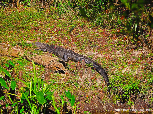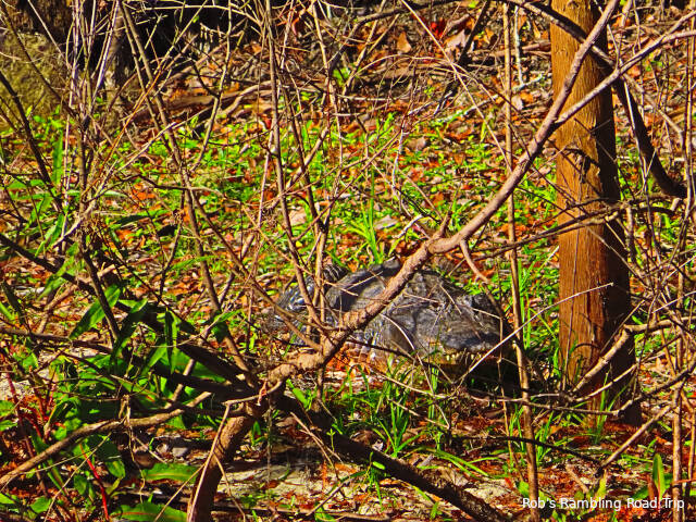 The walk along the river was pleasant. Other than squirrels the only wildlife I saw was one shy turtle. It jumped off a log into the water before I could turn on my camera. I wanted to see a gator or two taking the sun, but the trail didn’t pass close to any of the areas I know they frequent and I didn’t spot any others. The last two thirds of the loop hike is well inland of the river. There are many signs of animals digging along the trail, but I imagine that is at night.