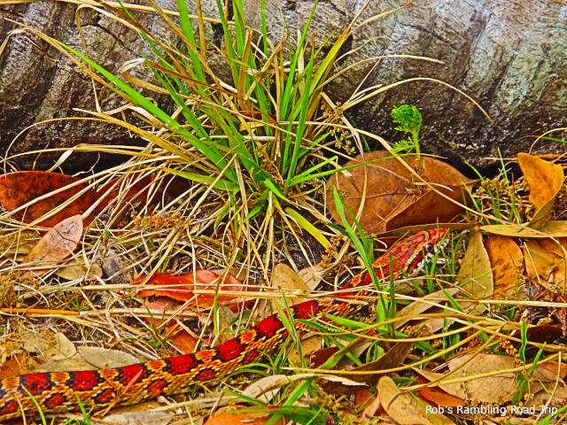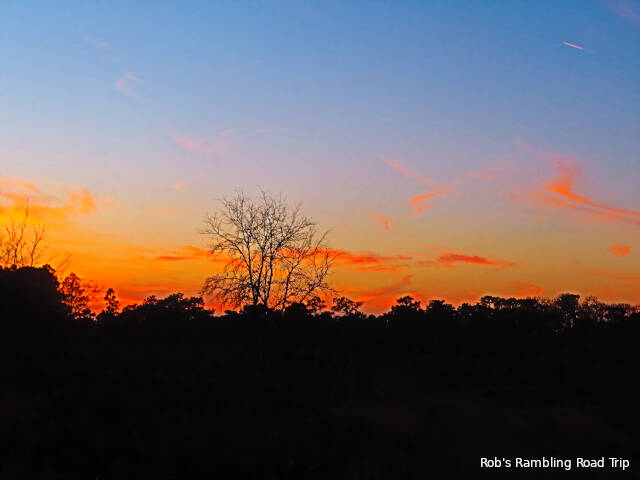 The one creature I did see that I could have gone without crossing paths was a snake. It was enjoying the diminishing sun in the middle of the trail. I’m not familiar with all the different types of snakes in Florida. While I thought it was probably a non venomous species, I gave it plenty of room. I waited for a few minutes and then resorted to tossing pebbles at it to get it to move off the trail. None of my tosses landed very close, but it eventually got the idea and moved along.