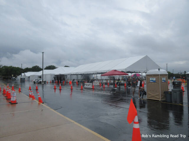 Today was the event I’ve been hanging around central Florida to complete. It was the day for my second Pfizer COVID shot. Shortly after noon I began the drive to the FEMA hosted mass vaccination site at Valencia College on the west side of Orlando. It is about 25 miles from my campsite in Davenport. The trip east on Interstate 4 is through the resort corridor with access to all the area theme parks. Traffic was heavy and the weather was threatening.