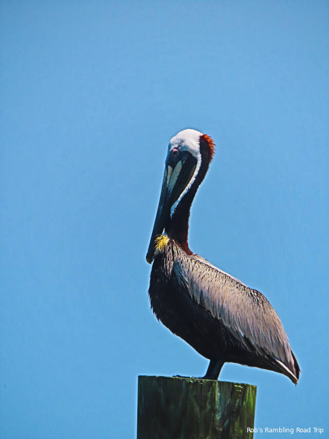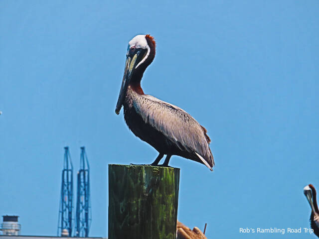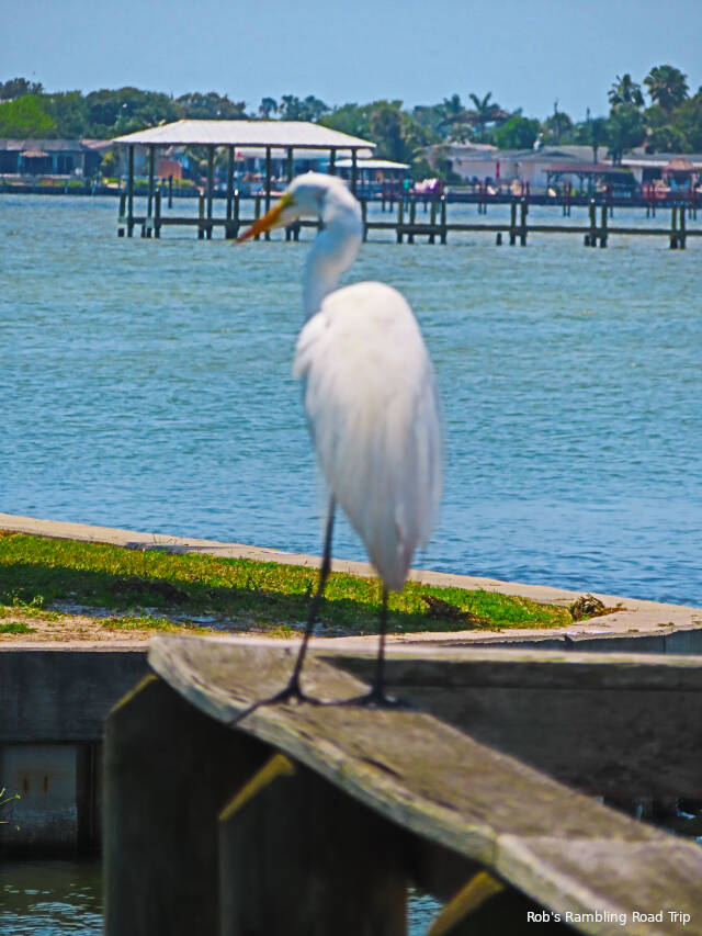 After enjoying a couple hours of quiet campground during the late morning I headed out for the day. My plan was to head up to the Daytona Beach area, but traffic had other ideas. After filling the car with gas, the road north toward Daytona Beach was filled with stopped traffic. I turned south instead. Eventually, I ended up back at Port Canaveral for more boat, pelican and people watching. On the way I stopped at two other county parks on the water. One park had a boat launch that was busier than a department store on Christmas Eve. There was a disorganized mess of cars with trailers trying to launch and retrieve boats from two narrow ramps. Some of the boats were bigger than you usually see being trailered. The boat trailers for a couple of the boats had three axles.