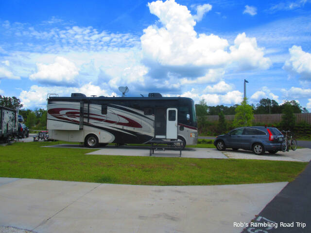 I arrived at the Pecan Park RV Resort at 12:45 and was able to check in without a problem. The park has expanded since I was last here in the late summer of 2016. I’m in a new area that is very near Interstate 95. The wall that separates the highway from the campground is less than 100 feet from my RV home. I knew it was going to be the case before I booked, so I don’t have any issues. The old area is right under the landing pattern for the Jacksonville International Airport. This section has a little more distance from the planes flight path. The trade off is plane noise or truck noise. It all doesn’t make much difference when all the windows are closed and the AC is on.