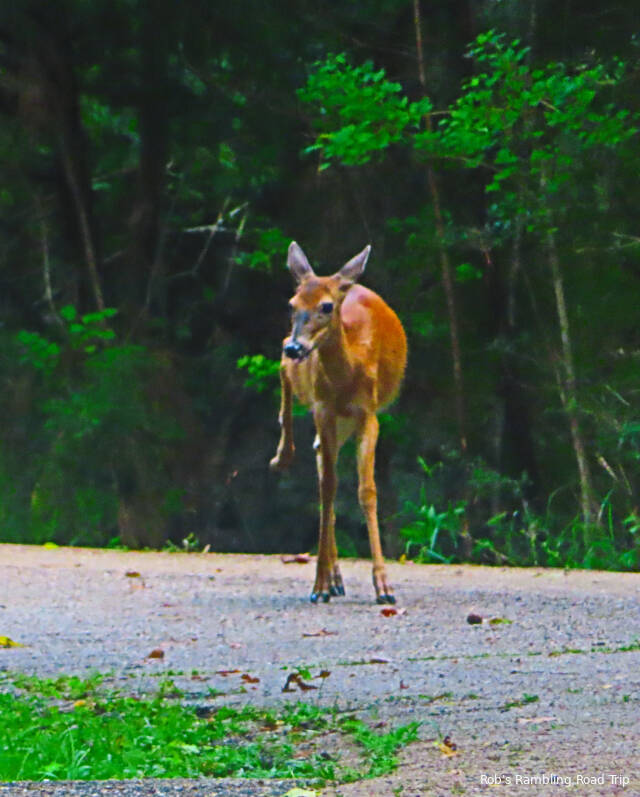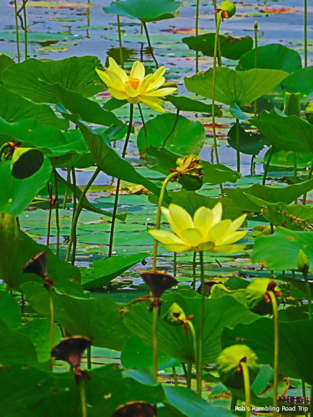 It rained a little overnight, but this morning was sunny. There weren’t any real clouds overhead, just the haze associated with the high humidity. When I was out exploring the park I found the level of standing water had decreased. I could use paths that were flooded earlier and I even managed to cross a couple of soggy lawn areas. That luxury went away later in the day. A very heavy thunderstorm with lots of rain visited this afternoon. The good thing is that’s a normal fair weather pattern for this area in the summer. The cloudy rainy days I’ve experienced since I arrived last Thursday are over for a few days.